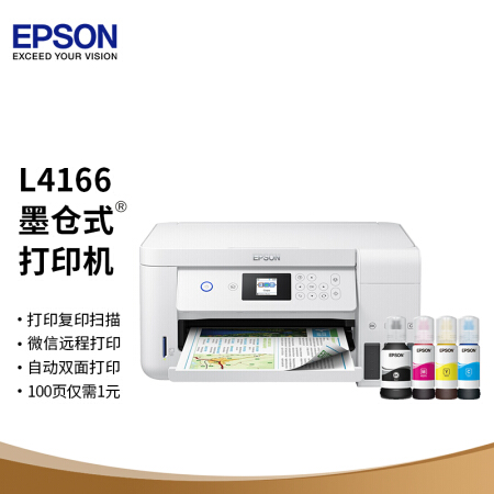 愛普生(EPSON)墨倉式品質款L4166(優(yōu)雅白) 微信打印/無線連接 打印復印掃描一體機