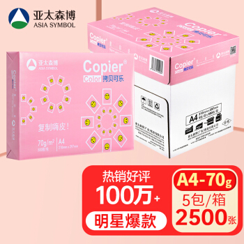 亞太森博(Asia Symbol)拷貝可樂70g A4復印紙 打印紙 網銷爆款 500張/包 5包/箱(2500張)(百旺系列)