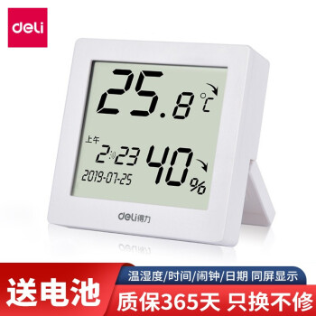 得力(deli) 8813 溫度計家用室內嬰兒房高精度電子溫濕度計電子鬧鐘 白色