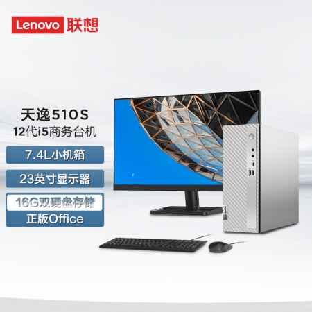 聯(lián)想 Lenovo 天逸510S英特爾酷睿i5個人商務臺式機電腦整機 12代i5-12400 16G 1T+256G SSDwifi win11 23英寸