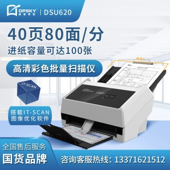 奧普思凱(OPSKY) 饋紙式掃描儀高清彩色雙面連續(xù)大容量自動進紙辦公設備發(fā)票文檔多介質掃描 DSU620 掃描儀(40頁80面/分鐘)
